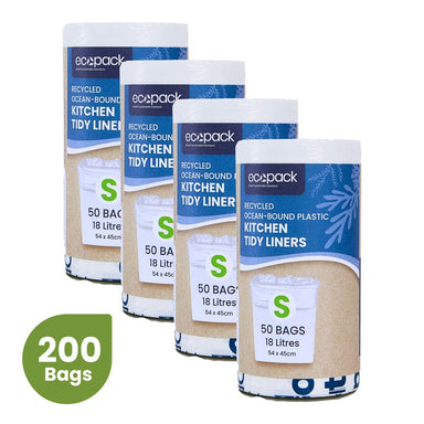 27L Recycled Ocean-Bound Plastic Bin Liners with Tie Handles (Roll of 20) Set of 4 rolls (80 Bags)
