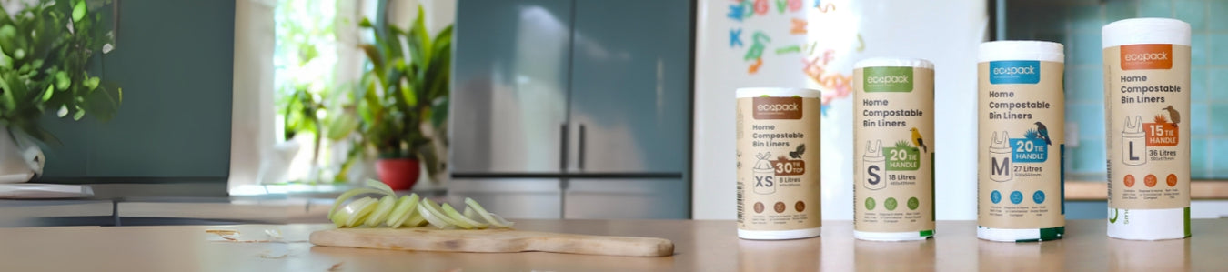 Bin liners that are designed to return to the Earth. Ecopack compostable garbage bags are made with corn-starch bio-resins, PLA and PBAT. These biodegradable bin liners are designed to degrade in moist conditions without leaving harmful residues in it's wake. Certified to strict international standards and printed with non-toxic inks.