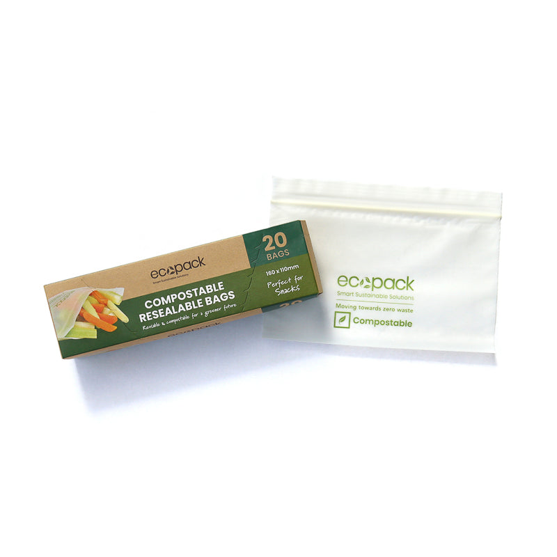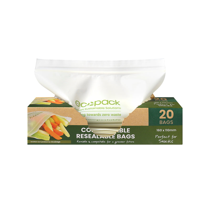 Pack snacks, fruit, and small food portions with a compostable alternative to plastic zip bags using Ecopack Compostable Resealable Snack Bags , ideal for lunchboxes, pantry organisation, and food prep.