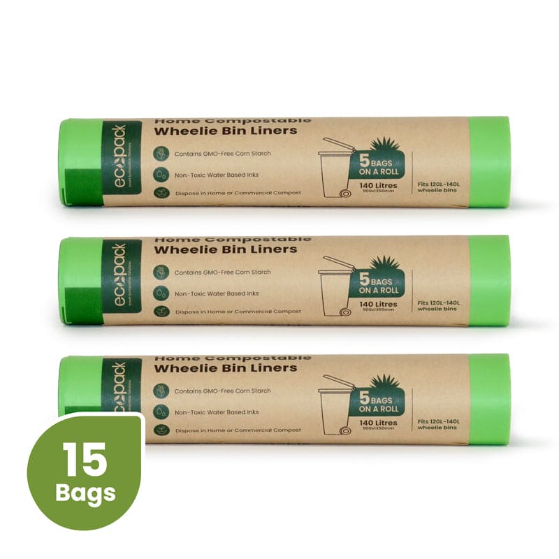 Ecopack 140L Compostable Wheelie Bin Bags Bundle (3 Rolls/15 Bags)