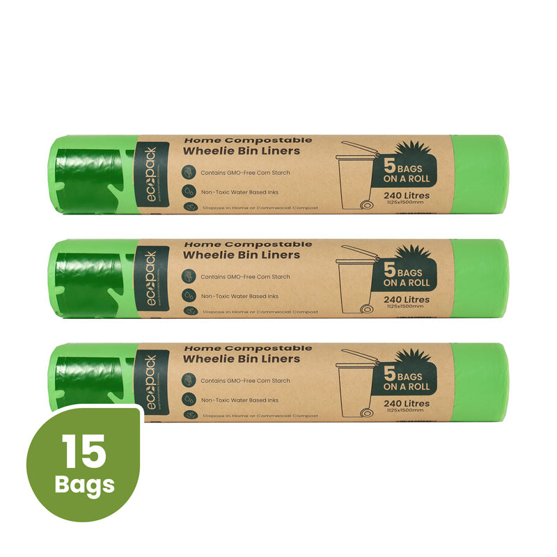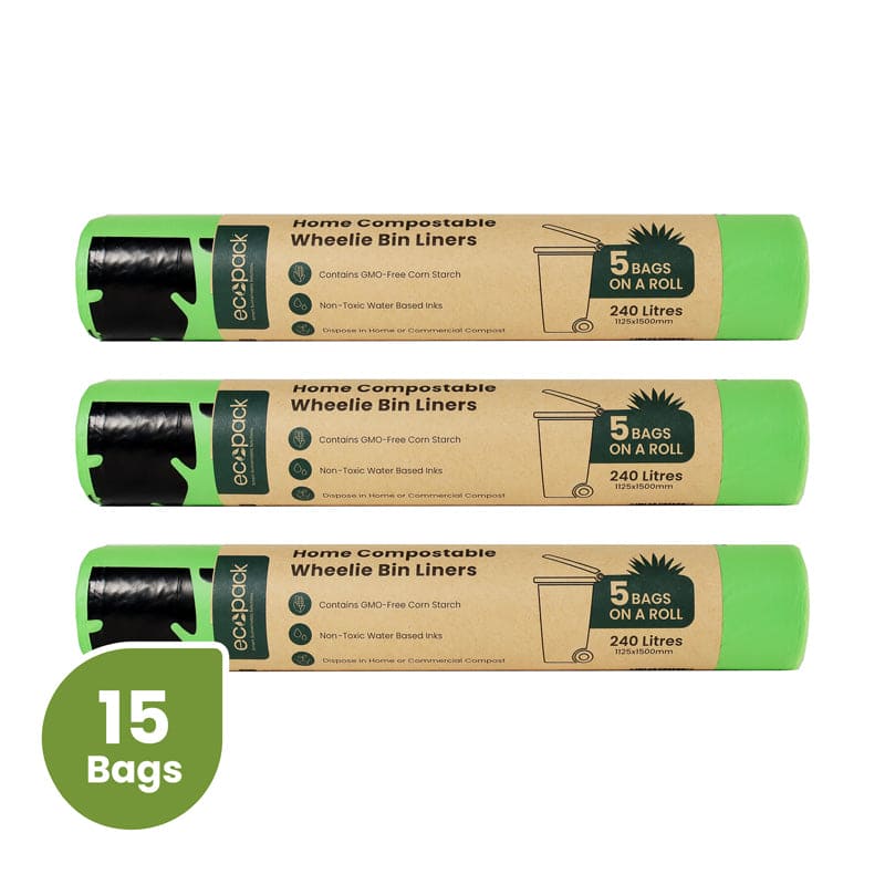 Ecopack 240L Compostable Wheelie Bin Bags Bundle (3 Rolls/15 Bags)