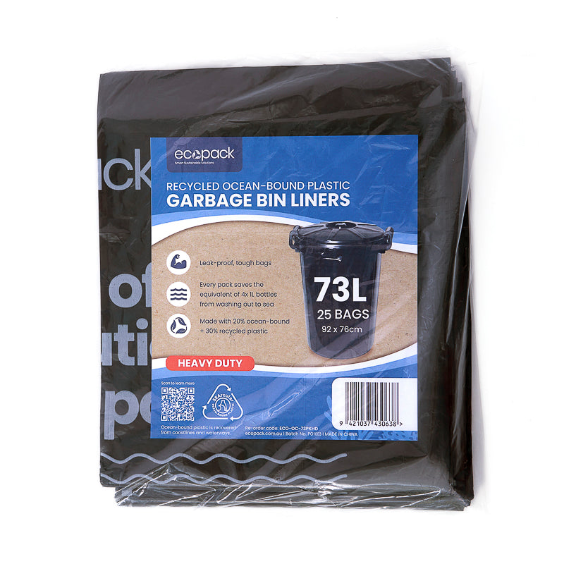 Ecopack 73L Recycled Garbage Bags - Ocean Bound - Heavy Duty (1 Pack/25 Bags)